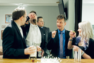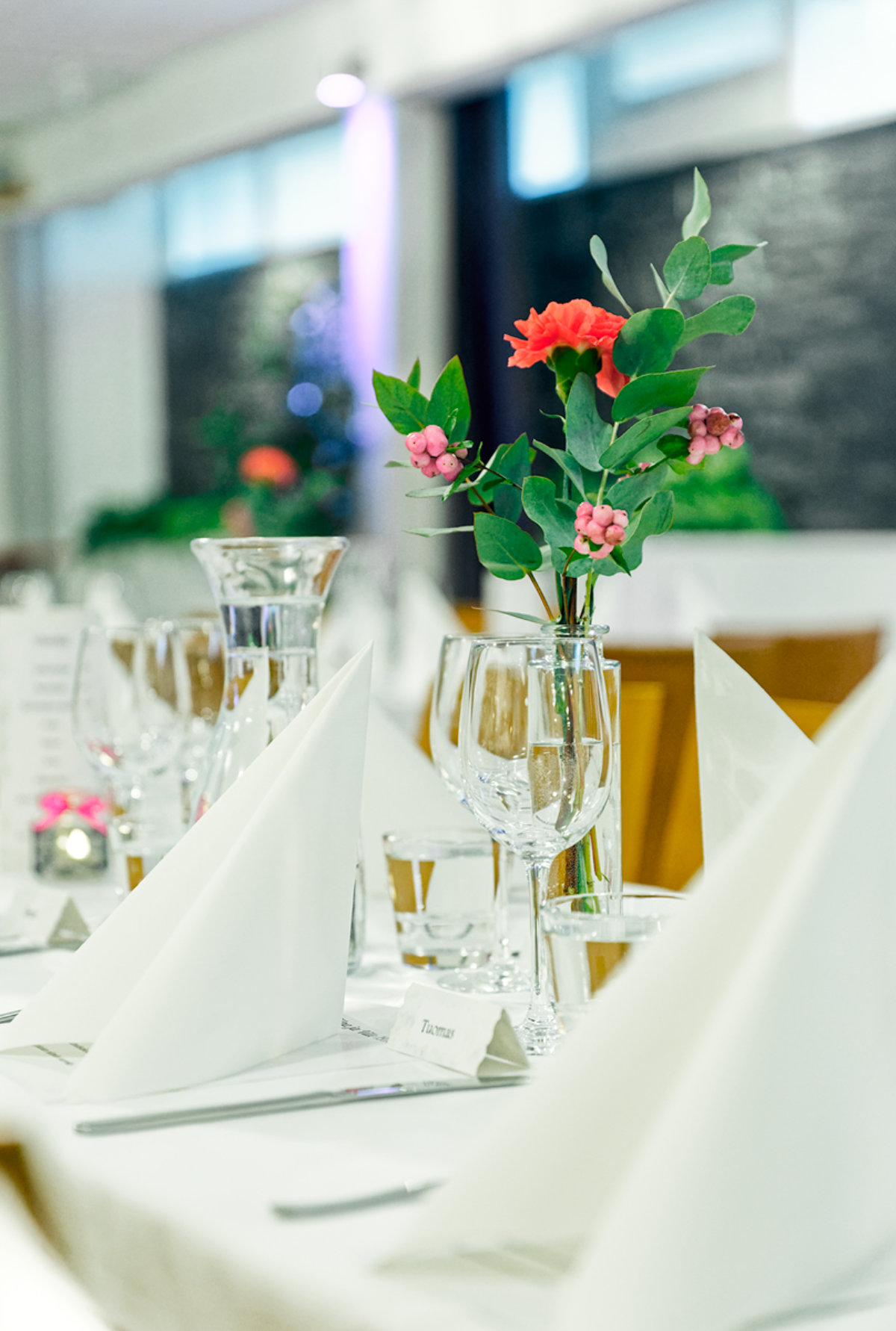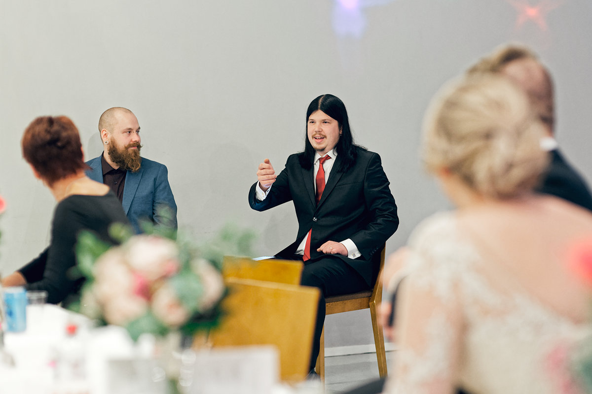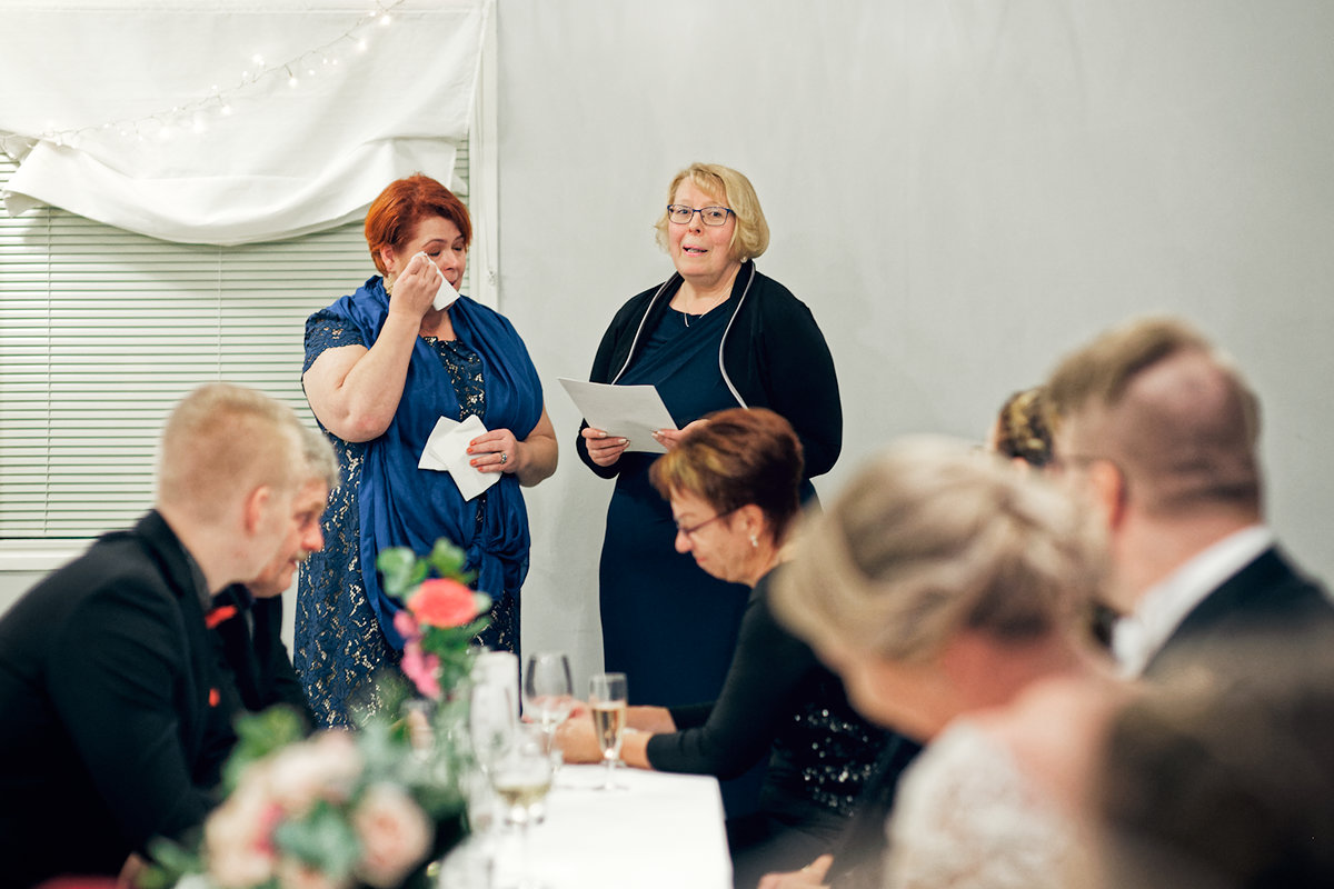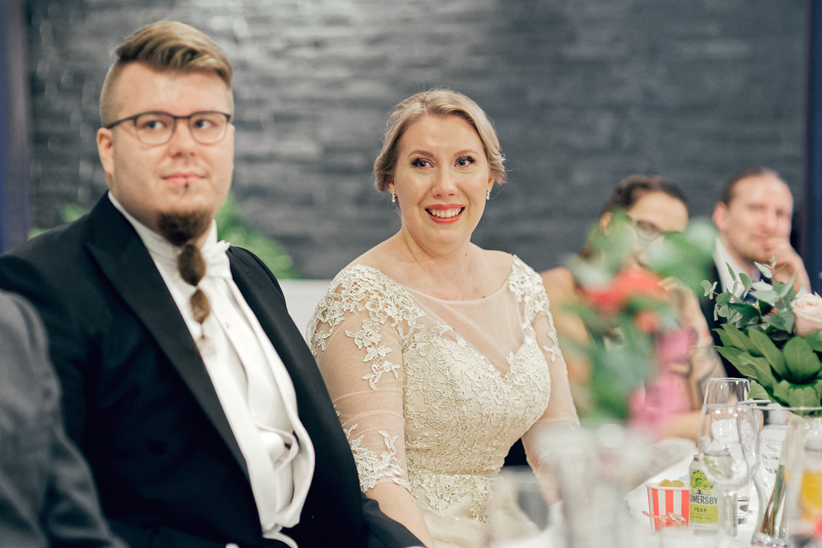 Häitä vietettiin hienona ruskaan värittämänä syyspäivänä. Häämuotokuvat otettiin kauniissa Linnanpuistossa, keltaisten lehtien värittäessä upeasti tilannetta. Puistosta jatkettiin Martin kirkkoon, joka ei ole niitä ihan suosituimpia hääkirkkoja, vaikka onkin niin upea että voisi olla. Kirkosta matka vei Juhlavaan, joka seudulla asuneena muistuu entisenä Jehovan todistajien salina. Niin vieraat kun kuvaajakin viihtyivät juhlissa hyvien tarjoilujen, puheiden ja muun mukavan kera.